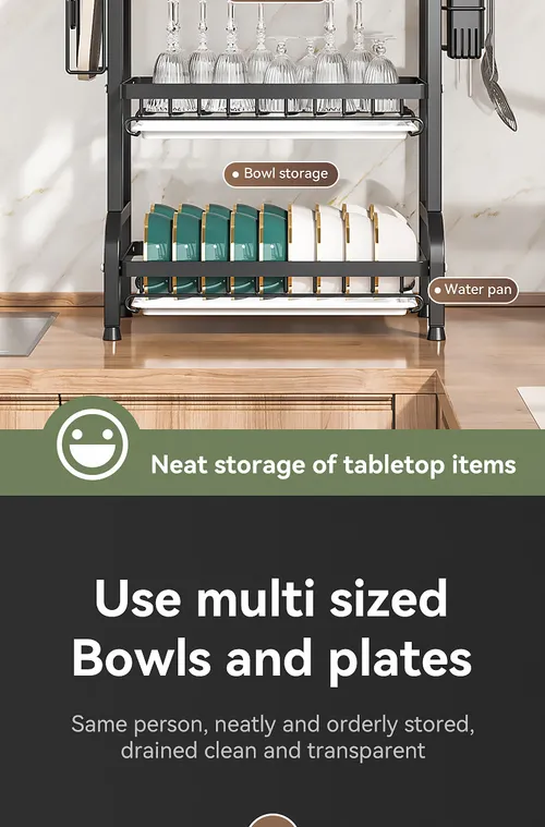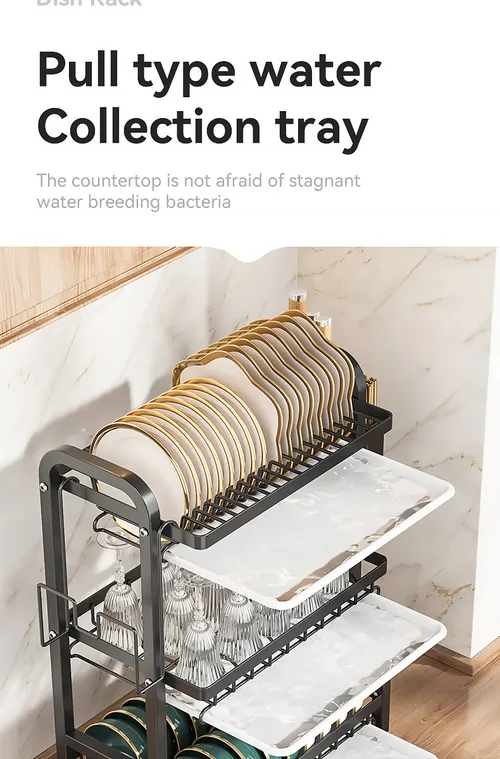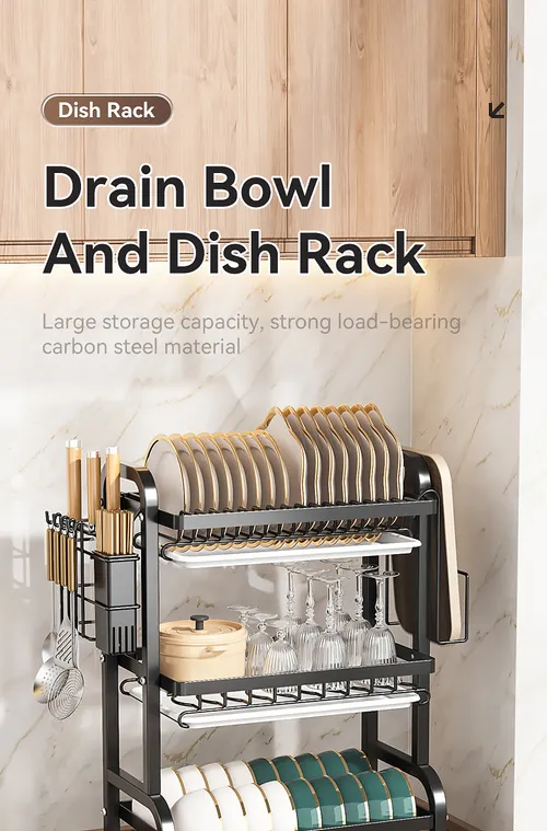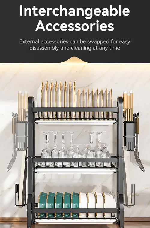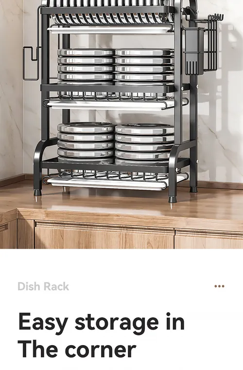2025 Space-Saving 3-Tier Dish Rack – Large Capacity Kitchen Organizer with Drip Tray & Cutting Board Holder Black